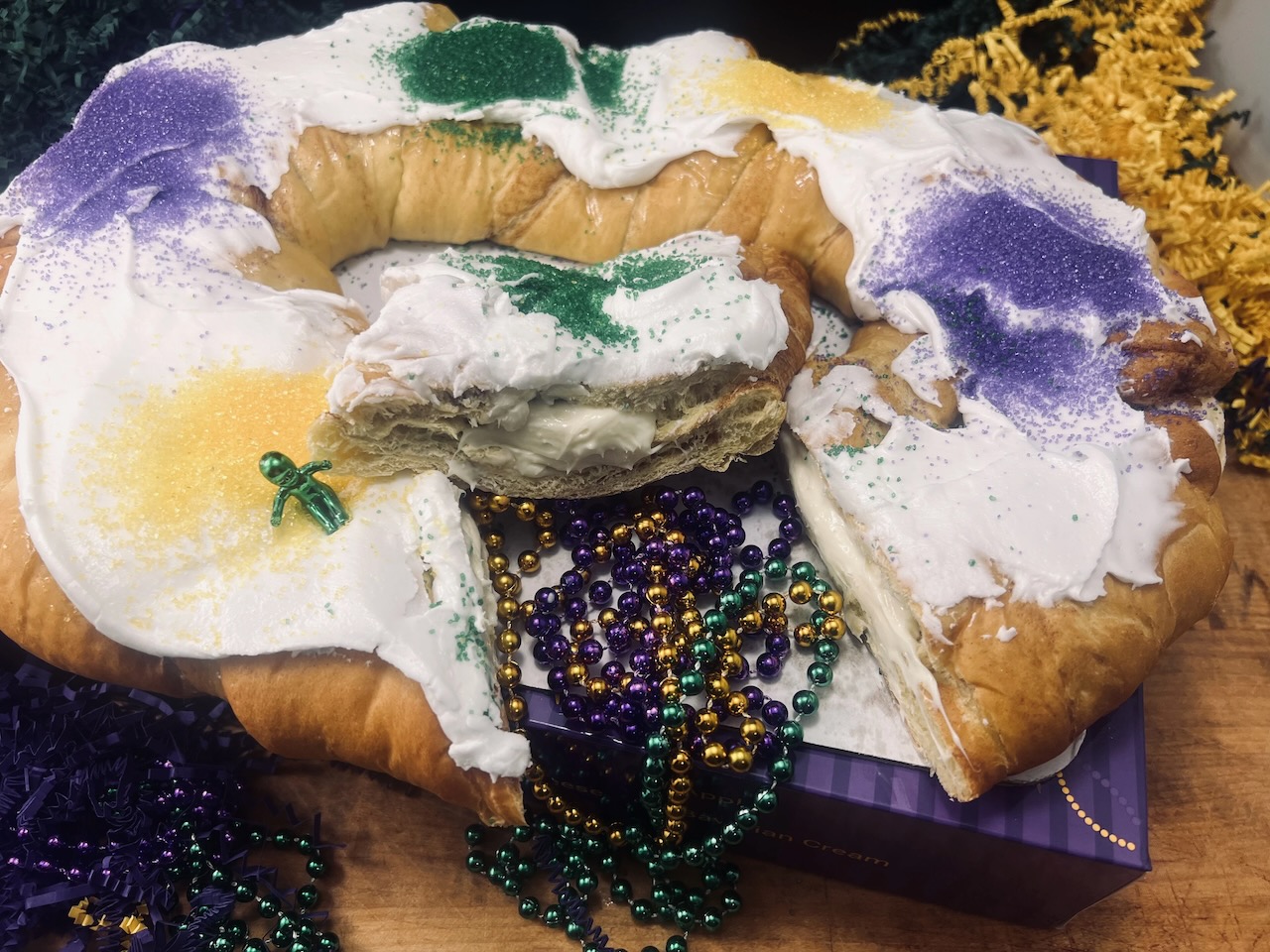 Get the best of both worlds with our Two-Pack Combo: Traditional + Cream Cheese. This bundle includes one classic cinnamon-and-vanilla Traditional King Cake and one rich Cream Cheese King Cake filled with our house-made smooth cream cheese blend.